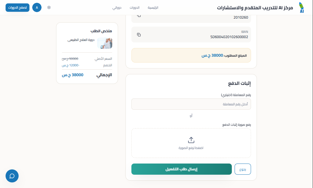 رفع صورة إثبات الدفع أو رقم المعاملة